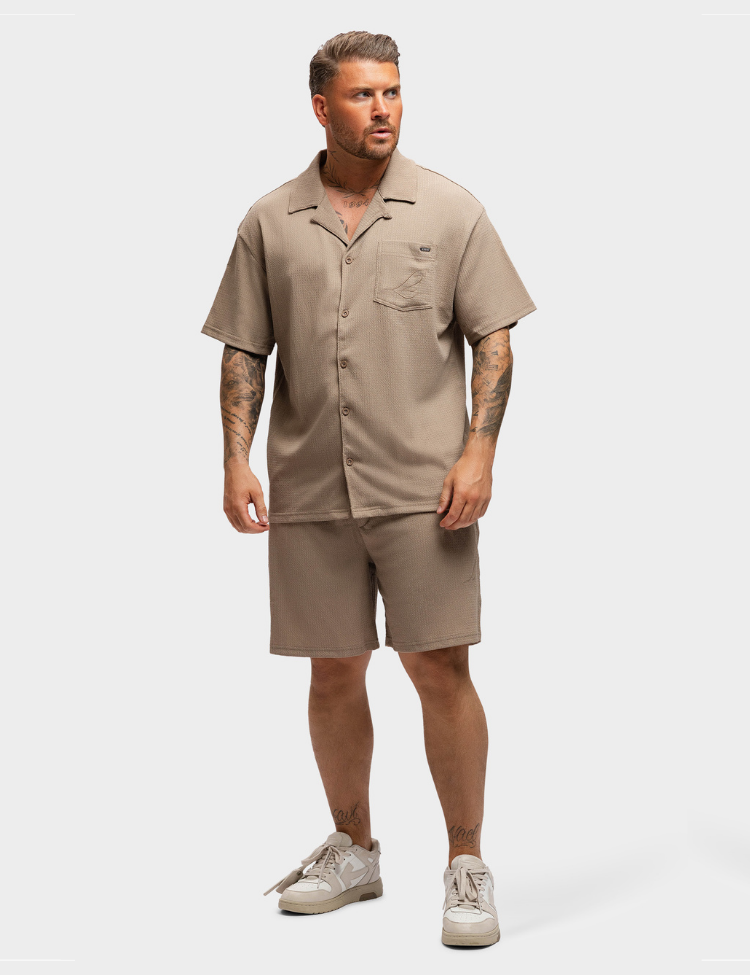 De 2LEGARE Embroidery Combi-Set bestaat uit een luchtige, geborduurde button-up shirt met korte mouwen en een bijpassende short. Gemaakt van een comfortabele, lichtgewicht stof met subtiele structuur. Het shirt is voorzien van een borstzak met geborduurd logo en een klassieke kraag. De short heeft een relaxte pasvorm met een elastische tailleband en steekzakken. Ideaal voor zomerse dagen of een casual look met stijl.