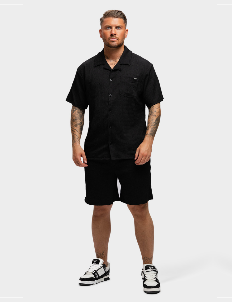De 2LEGARE Embroidery Combi-Set bestaat uit een luchtige, geborduurde button-up shirt met korte mouwen en een bijpassende short. Gemaakt van een comfortabele, lichtgewicht stof met subtiele structuur. Het shirt is voorzien van een borstzak met geborduurd logo en een klassieke kraag. De short heeft een relaxte pasvorm met een elastische tailleband en steekzakken. Ideaal voor zomerse dagen of een casual look met stijl.