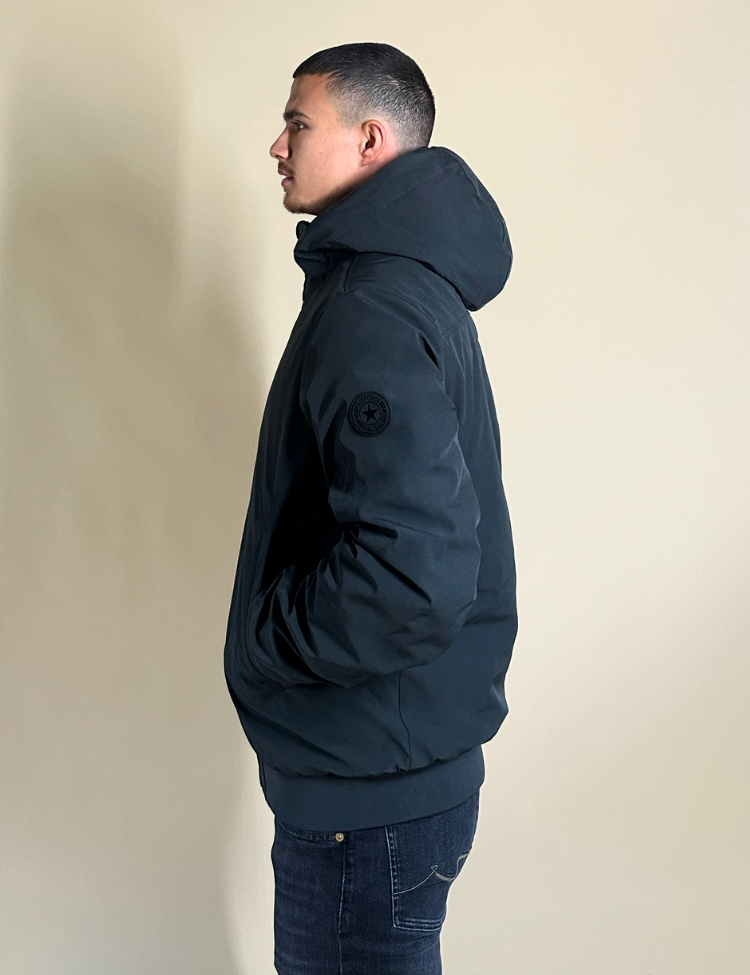 De Airforce Padded Bomber jas heeft een capuchon, ritssluiting, logo patch op linkermouw en stretch band bij de heup en polsen. Op de voorkant van de jas zitten twee zakken. Verkrijgbaar in verschillende kleuren.