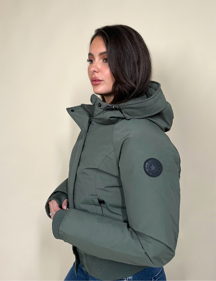 De Airforce Bomber Jacket is een moderne essential die moeiteloos warmte en stijl combineert. Dit korte model heeft een comfortabele, regular fit en is afgewerkt met een elastische band aan de onderzijde die niet alleen voor extra comfort zorgt, maar ook de warmte beter vasthoudt. De vaste capuchon biedt bescherming op frisse dagen, terwijl de magnetische sluiting over de rits een luxe en praktische touch toevoegt.