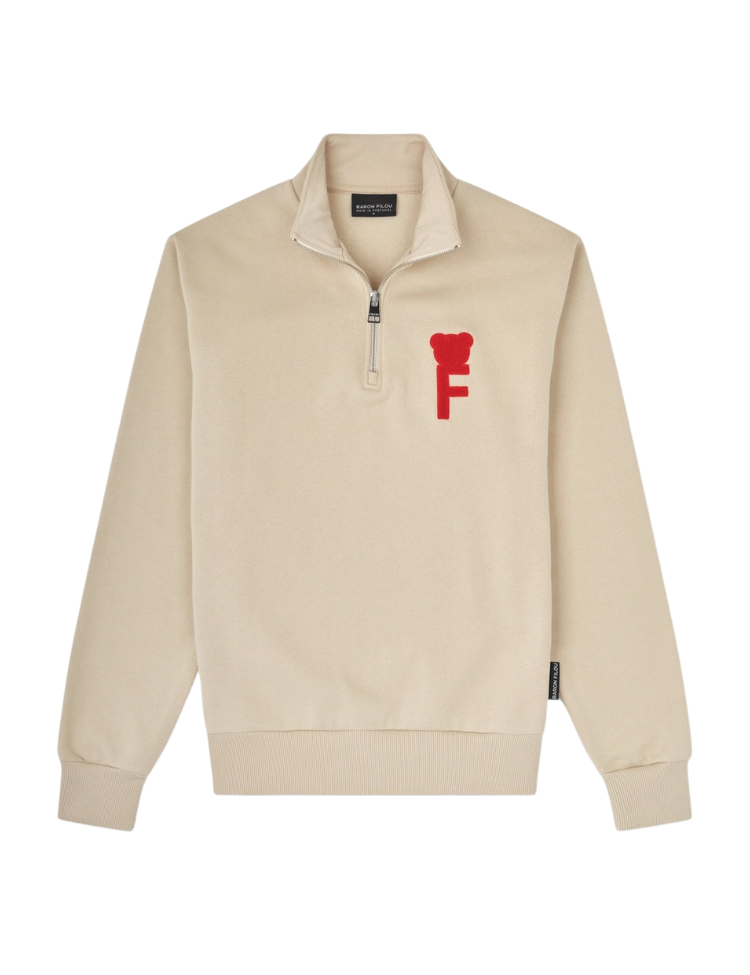 De Baron Filou Half Zip Chenille F Sweater is een stijlvol en veelzijdig item dat moeiteloos comfort en mode combineert. Deze half-zip pullover is gemaakt van organisch katoen en heeft een zachte brushed cotton binnenkant die heerlijk aanvoelt op de huid. De lange mouwen en de 1x1 ribboorden bij de mouwen en zoom zorgen voor een perfecte pasvorm en een moderne uitstraling. Het iconische chenille-design op de borst geeft de sweater een opvallend en luxe detail. Perfect om casual te dragen met jeans of te combineren in een gelaagde outfit voor een trendy look.