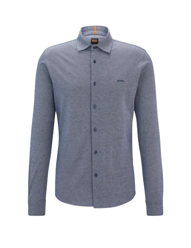 Kies voor stijl en comfort met het BOSS Mysoft overhemd in de kleur Dark Blue. Dit moderne overhemd is gemaakt van een zachte, ademende jersey stof met stretch, waardoor het niet alleen elegant oogt, maar ook heerlijk comfortabel draagt. De regular fit pasvorm zorgt voor een relaxte, moeiteloze look die geschikt is voor iedere gelegenheid.