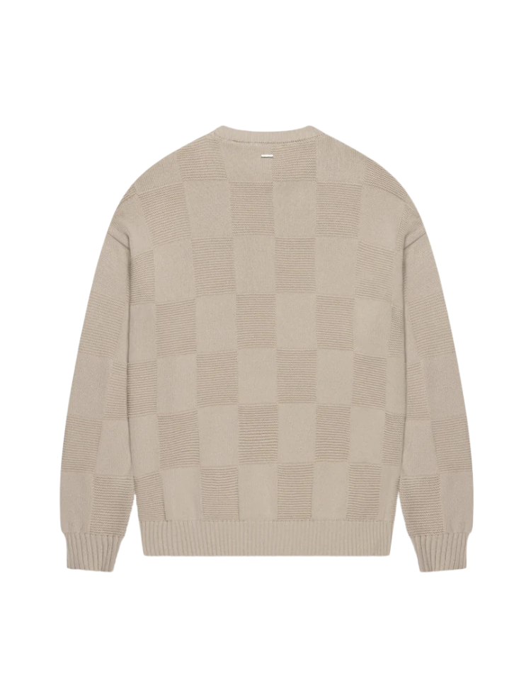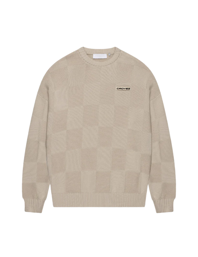 De Croyez Checkerboard Knit Sweater – Grey is een moderne gebreide trui die comfort en stijl combineert. Het ontwerp kenmerkt zich door een subtiel checkerboard-patroon dat met verschillende breistructuren is verwerkt in de stof, wat zorgt voor diepte en textuur. De trui heeft een regular fit met een ronde hals, geribde boorden en subtiel Croyez-logo op de borst. Gemaakt van een zachte katoenmix voor optimaal draagcomfort, ideaal voor het najaar en het voorjaar.