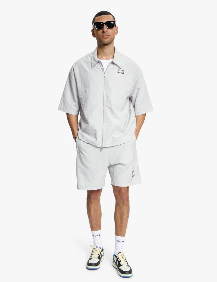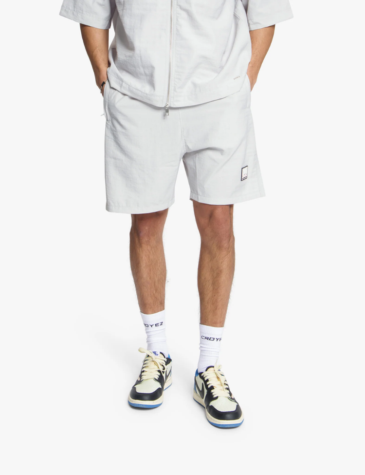 Croyez Crinkle Patch Shorts - Light Grey