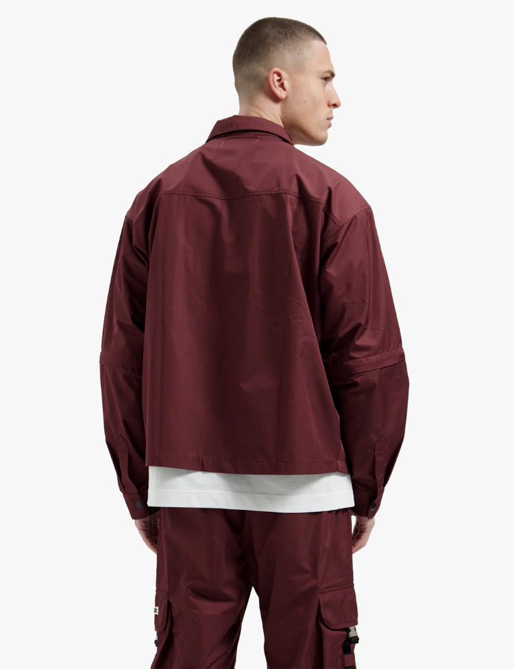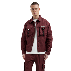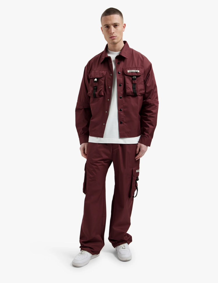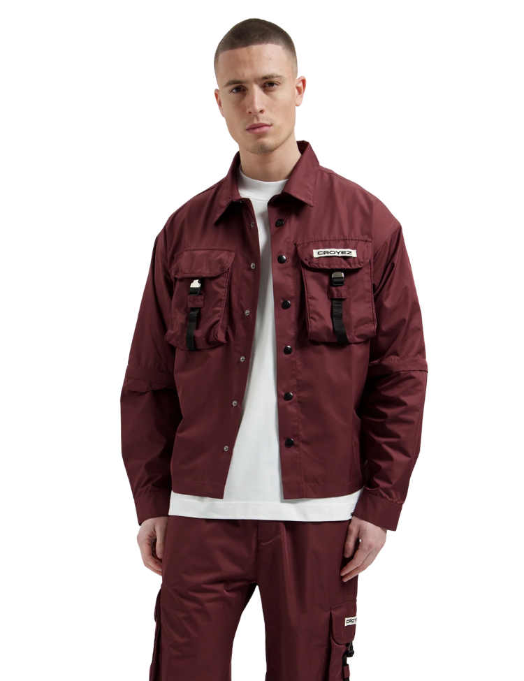 Dit nylon jack heeft een klassieke kraag en doorlopende knoopsluiting. De twee borstzakken met ritssluiting en zwarte banden geven het jack een technisch karakter. Op de linker borstzak zit een wit label met "Croyez" tekst. Het lichtgewicht nylon materiaal heeft een glanzende afwerking. De burgundy kleur geeft dit overshirt een rijke uitstraling die je casual streetwear look compleet maakt.