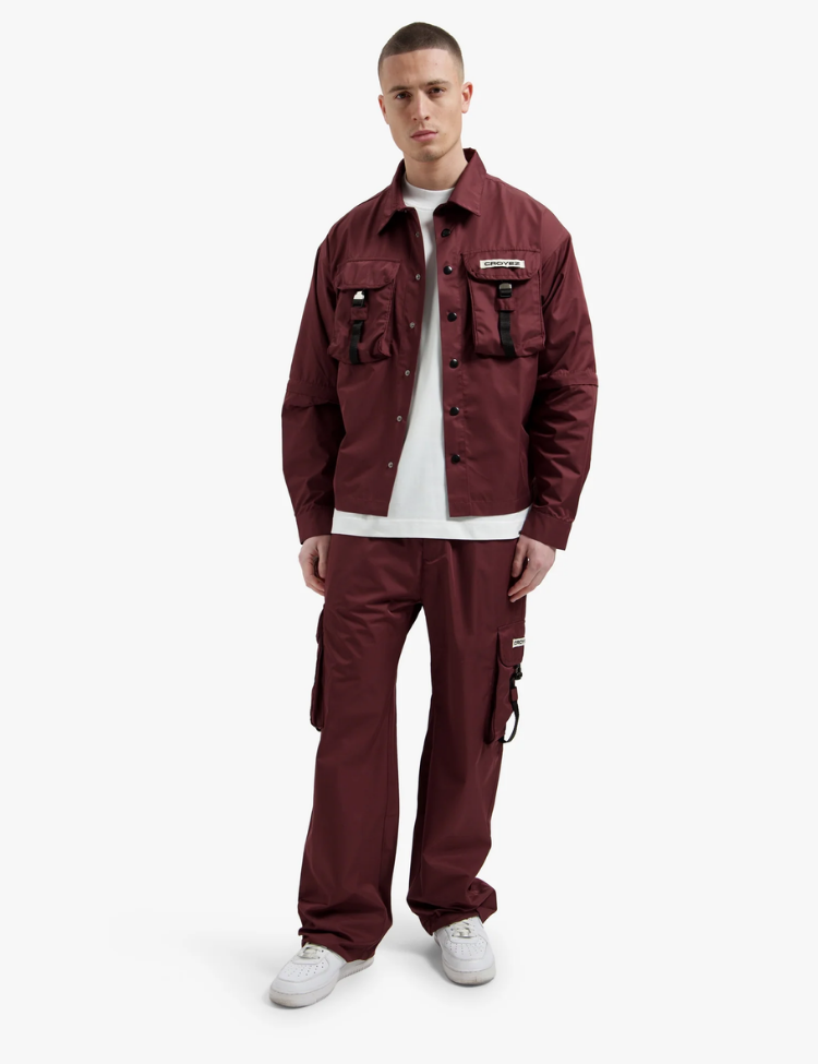 Deze burgundy cargobroek van Croyez combineert perfect met een oversized hoodie of basic T-shirt voor een complete streetwear outfit. Voor een gelaagde look draag je hem met een longline shirt eronder.
