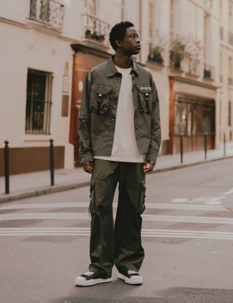 De broek matcht perfect met het bijpassende jack voor een complete utility look. Croyez weet hoe je streetwear met klasse draagt. Het witte T-shirt eronder houdt de outfit fris en de zwarte sneakers maken het geheel af.
