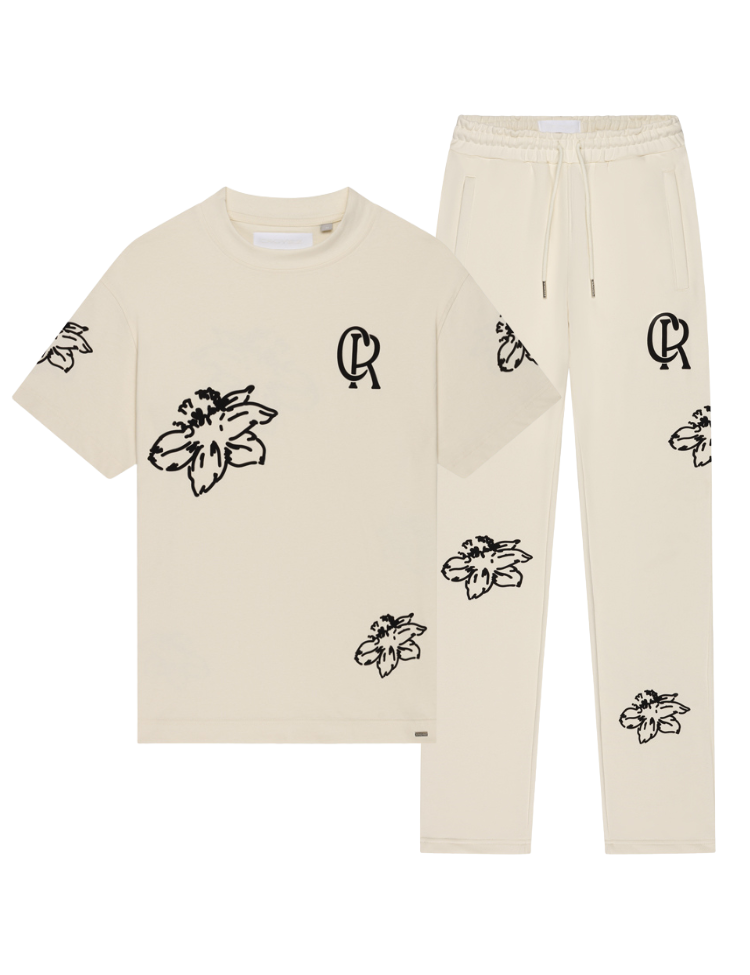 De Croyez Straight Combi-set brengt comfort en stijl samen in een moderne streetwear look. De Straight Leg Flower Sweatpants heeft een relaxte fit met rechte pijpen en subtiele flower-prints, afgewerkt met een elastische tailleband en praktische steekzakken. Het Flower T-Shirt vult dit perfect aan met een regular fit, zacht katoen en unieke flower-details die zorgen voor een eigentijdse, artistieke uitstraling. Samen vormen ze een veelzijdige set die je moeiteloos combineert met sneakers voor een casual vibe of met een blazer voor een modieuze twist.