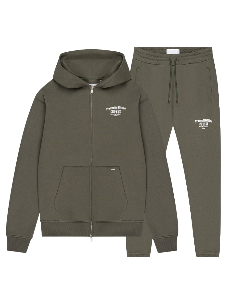 De Croyez Fraternité Combi-set combineert ultiem comfort met een moderne streetwear look. De zip hoodie is gemaakt van een zachte katoenmix en voorzien van ritssluiting, capuchon en kangoeroezakken, afgewerkt met opvallende Fraternité-branding. De sweatpants heeft een tapered fit met elastische taille en trekkoord, steekzakken en een achterzak, wat zorgt voor zowel praktisch gemak als een gestroomlijnde uitstraling. Samen vormen ze een veelzijdige set die je casual draagt met sneakers of stijlt met een jas voor een urban chic outfit.