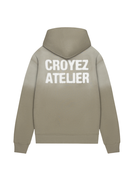 De Croyez Sprayed Atelier Straight Leg in Dusty Olive is een comfortabele en eigentijdse joggingbroek met een rechte pasvorm. Gemaakt van hoogwaardig katoenmix met een zachte afwerking. De broek heeft een elastische tailleband met trekkoord, steekzakken aan de voorzijde en een opgestikte achterzak. De kenmerkende ‘CROYEZ ATELIER’-branding is prominent geplaatst op het bovenbeen, uitgevoerd in een gespoten stijl voor een uniek visueel effect. Perfect te combineren met de bijpassende hoodie of longsleeve voor een complete look.