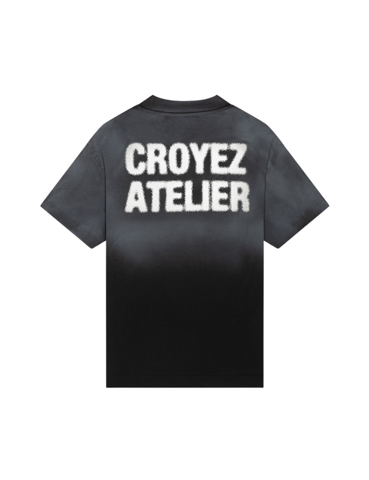 Maak een krachtig fashion statement met de Croyez Sprayed Atelier T-Shirt – Black. Deze T-shirt is onderdeel van de iconische “Sprayed Atelier” collectie en valt direct op door zijn unieke geverfde verloop: een subtiele overgang van antracietgrijs naar diepzwart. De voorzijde is voorzien van het herkenbare Croyez Atelier logo op de borst, terwijl de rug een grote, op spray geïnspireerde backprint toont – dé blikvanger van deze stijl.