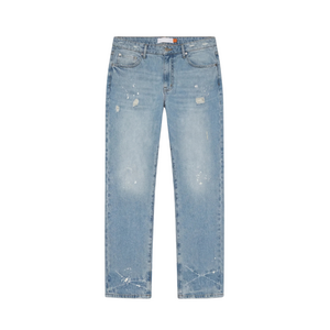 Deze lichtblauwe straight leg jeans van Croyez combineert een relaxte pasvorm met stoere distressed details. De spijkerbroek heeft een gewassen finish met authentieke slijtage-effecten, scheuren en verfspetters die je look direct karakter geven. De rechte pijpen zorgen voor een tijdloze silhouet dat bij elke stijl past. Twee voorzakken en twee achterzakken bieden praktische opbergruimte. De klassieke knoop- en ritssluiting met metalen hardware maken het plaatje compleet. Perfect voor wie houdt van denim met een verhaal.