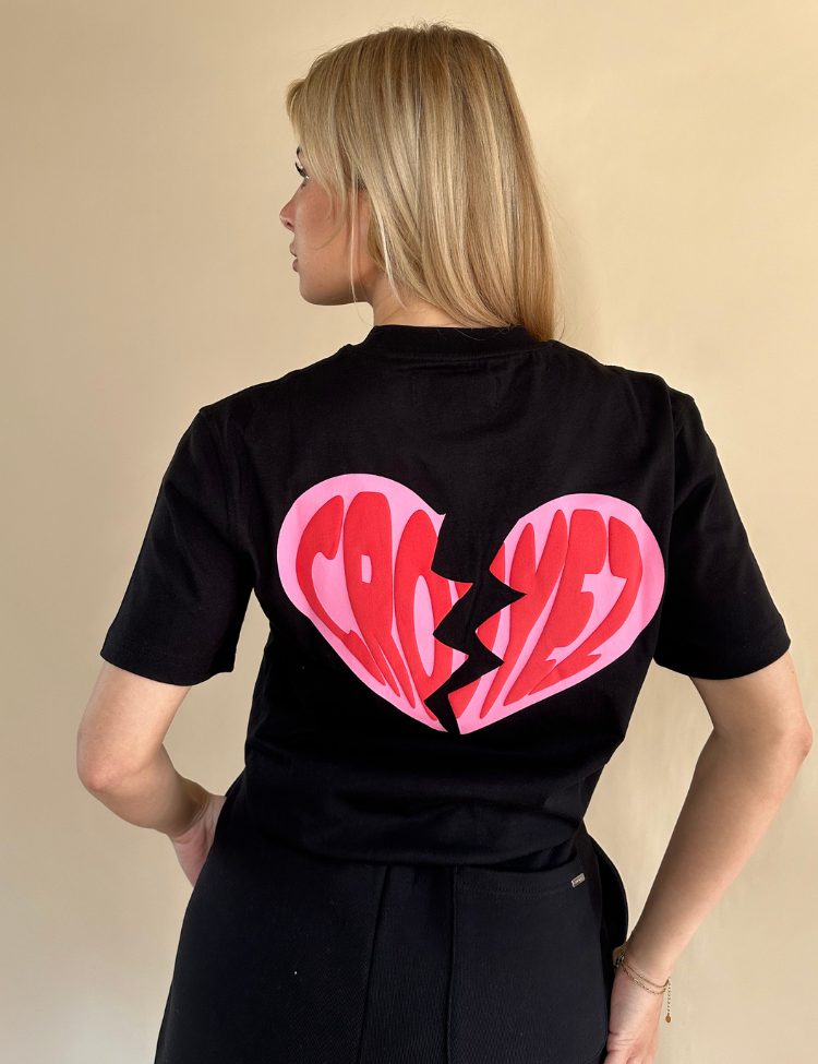 Croyez Women Broken Puffed Heart T-Shirt - Black Red