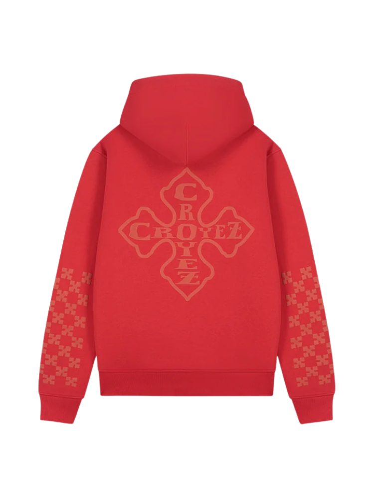 Deze rode Croyez hoodie draag je zoals op de foto met een matching joggingbroek voor een complete