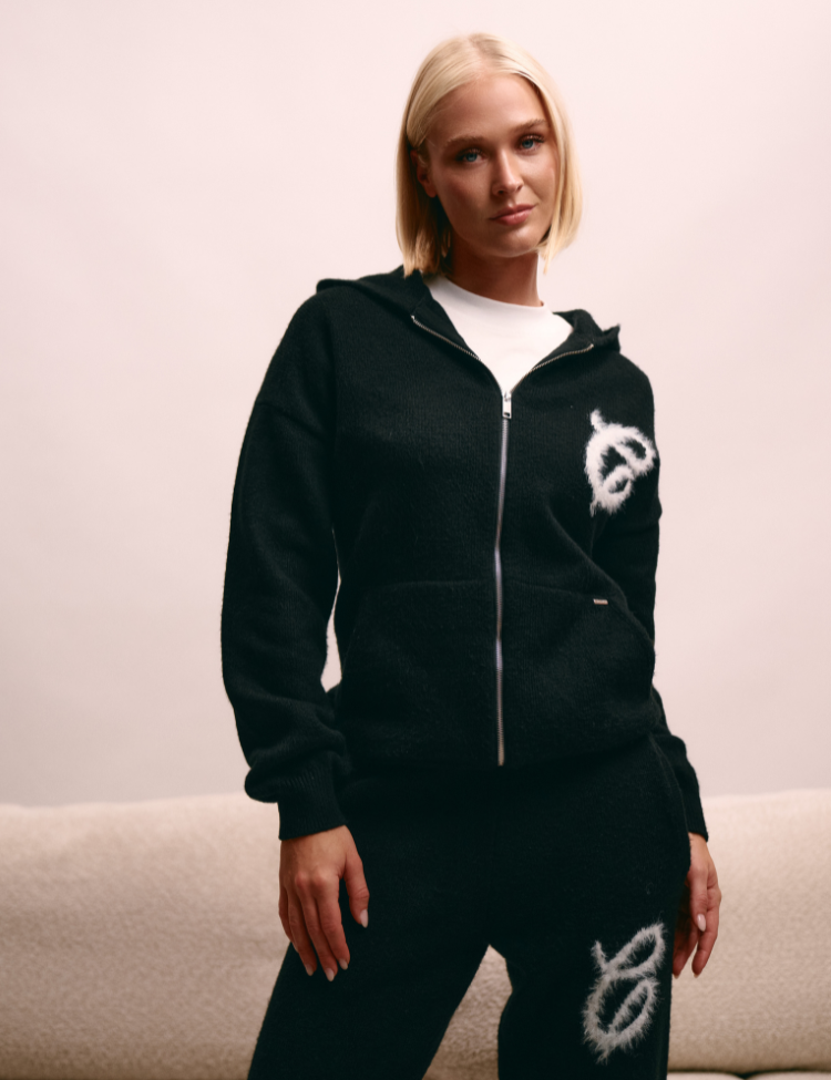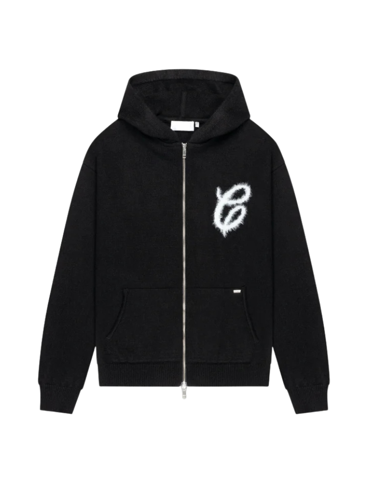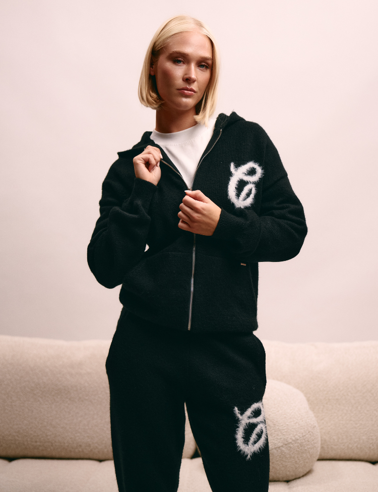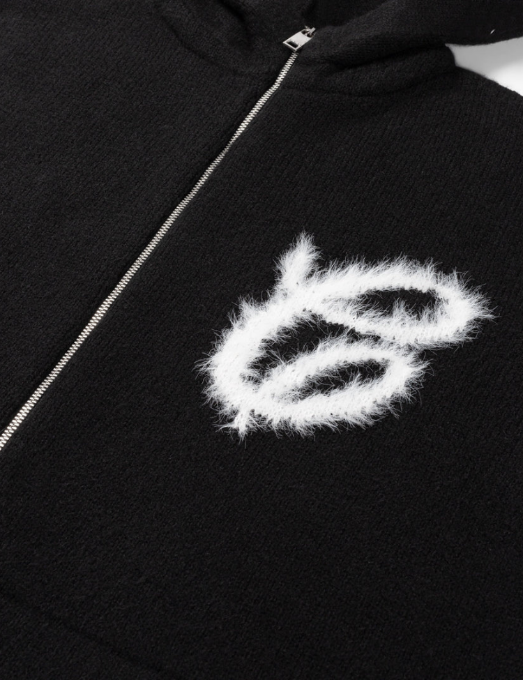 Croyez Women Fluffy Essence Knit Zip-Hoodie - Black