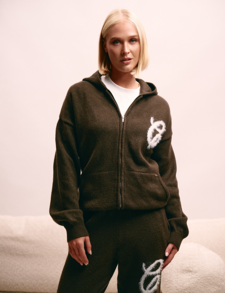 Croyez Women Fluffy Essence Knit Zip-Hoodie - Brown