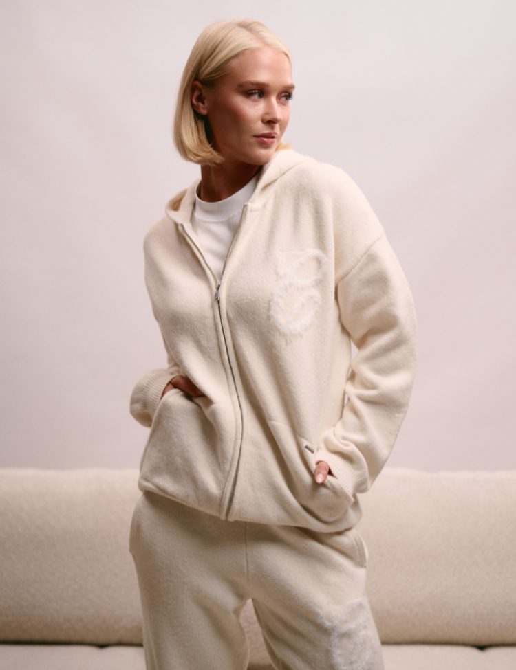 De Croyez Women Fluffy Essence Knit Zip Hoodie biedt een perfecte mix van comfort, warmte en stijl. Deze hoodie is vervaardigd uit een zachte fluffy knit stof die heerlijk aanvoelt op de huid en ideaal is voor koelere dagen. De oversized pasvorm geeft een ontspannen, moderne uitstraling, terwijl de ritssluiting aan de voorzijde zorgt voor praktisch gebruiksgemak. Combineer de hoodie met de bijpassende Fluffy Essence Knit Sweatpants voor een complete, elegante loungewear look.