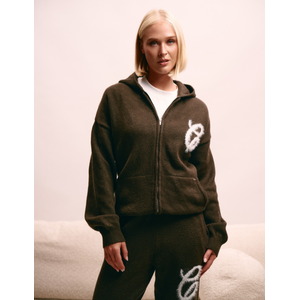 Croyez Women Fluffy Zip-Hoodie Combi-set - Brown