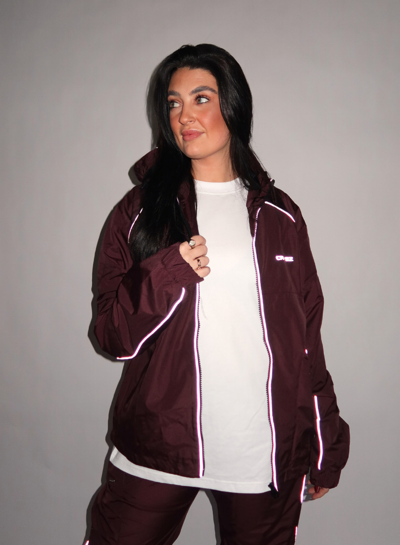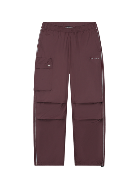 Deze windbreaker van Croyez draag je perfect over een wit T-shirt zoals op de foto. Combineer met de bijpassende burgundy parachute broek voor een complete tracksuit vibe. Witte sneakers maken je outfit helemaal af.