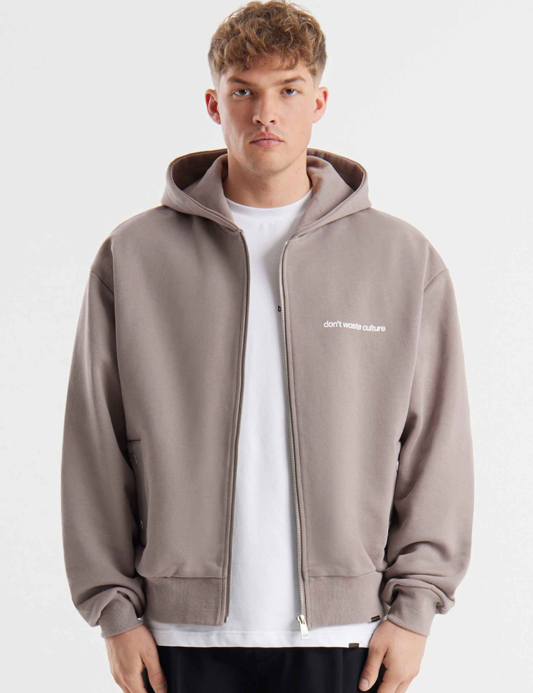 Don't Waste Culture Ale Zip Hoodie - Warm Grey