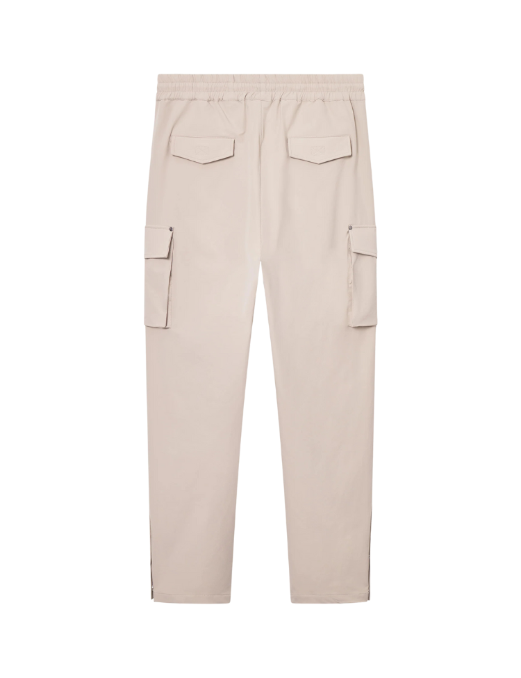 Het slim maar recht vallende silhouet geeft de cargo een moderne, clean look, terwijl de verborgen knoopsluiting met sidesplit bij de enkels zorgt voor een unieke en veelzijdige stylingoptie. Hierdoor kun je eenvoudig switchen tussen een strakke fit of een relaxtere look. Daarnaast is de broek waterafstotend, waardoor hij niet alleen stijlvol maar ook functioneel is.