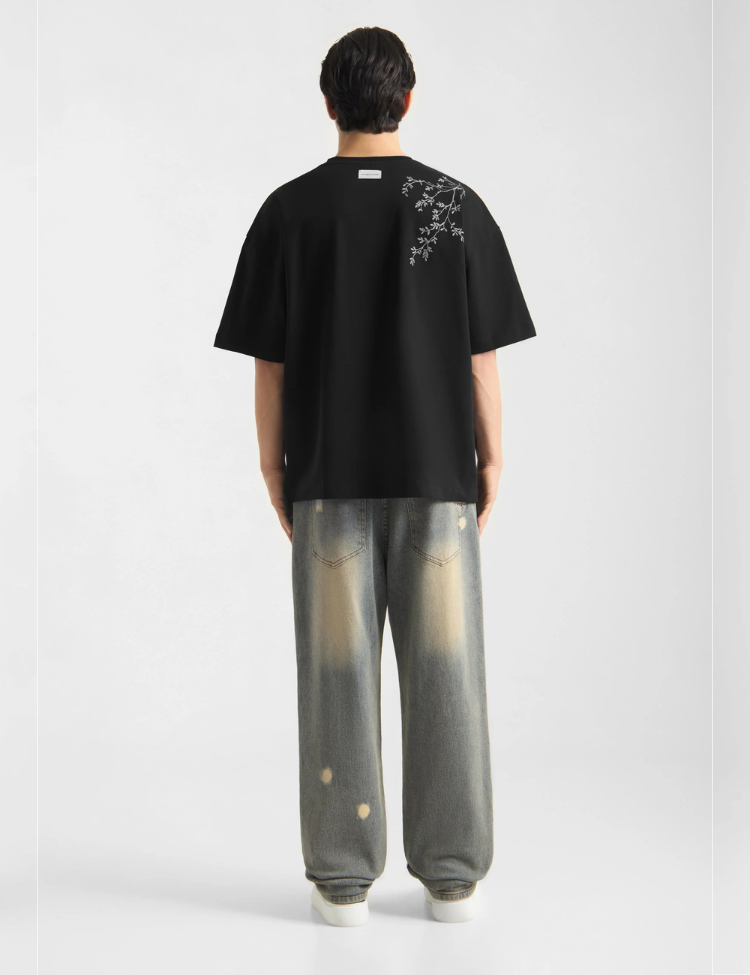 Design: Verfspetters, geborduurd bloemmotief op achterzak