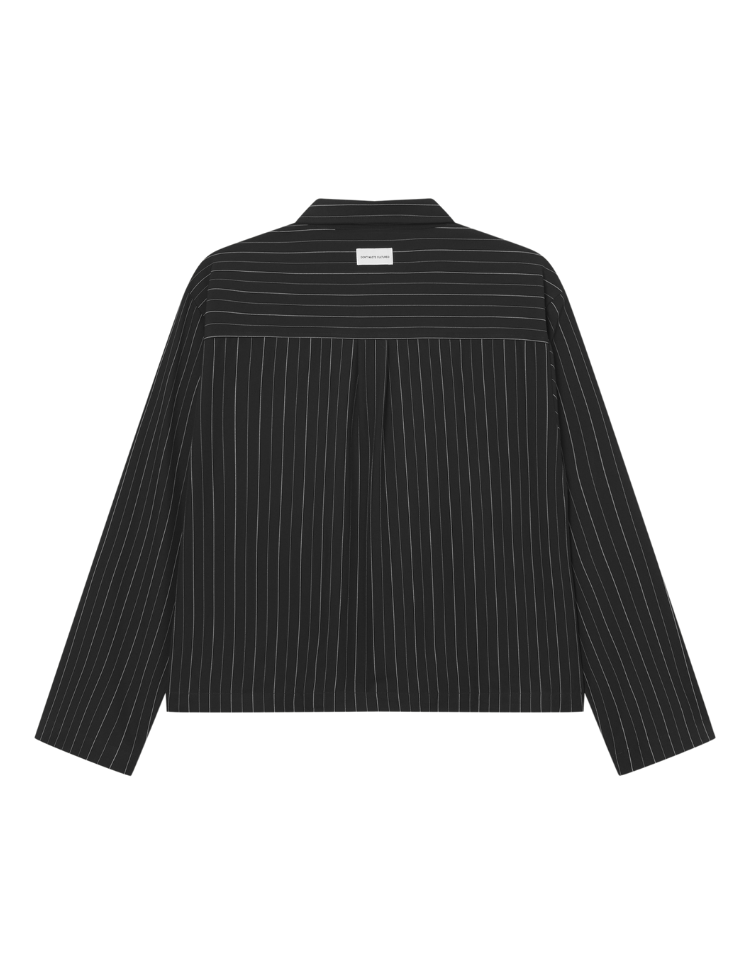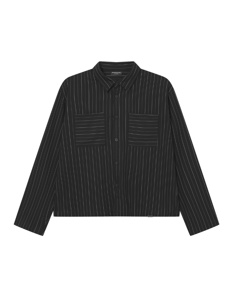 Het boxy silhouet met verlaagde schouders zorgt voor een moderne, nonchalante look en maakt het gemakkelijk om te layeren over T-shirts of lichte truien. Het verticale pinstripe patroon geeft het design een verfijnde uitstraling die moeiteloos van kantoor naar diner gaat. Functionele details zoals een klassieke spread collar, knoopsluiting en twee praktische borstzakken maken dit overshirt zowel stijlvol als veelzijdig. Met de lange mouwen en verstelbare manchetten rol je de look eenvoudig aan of uit voor iedere gelegenheid.