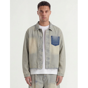 Kleur: Sand Pale Zakken: Contrasterende borstzak in donkerblauw denim Sluiting: Knoopsluiting Design: Verwassen effect met rauwe zoom en merkbranding op borstzak Artikelnummer: D13.1931