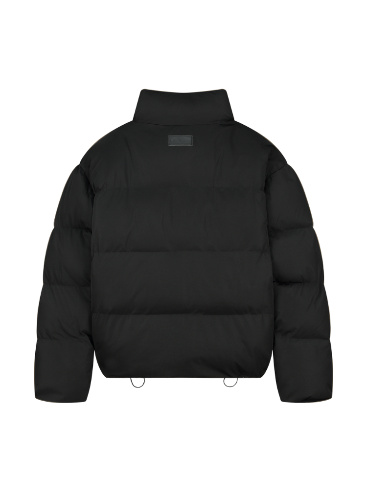 Het design heeft een boxy silhouet met verlaagde schouders voor een moderne, oversized look die ideaal is om te layeren. De verstelbare trekkoorden aan de zoom maken het eenvoudig om de jas naar wens te verstellen en de kou buiten te houden. Subtiele details zoals het screenprinted logo op de borst en de hoogwaardige YKK-ritsen geven de jas een premium uitstraling.
