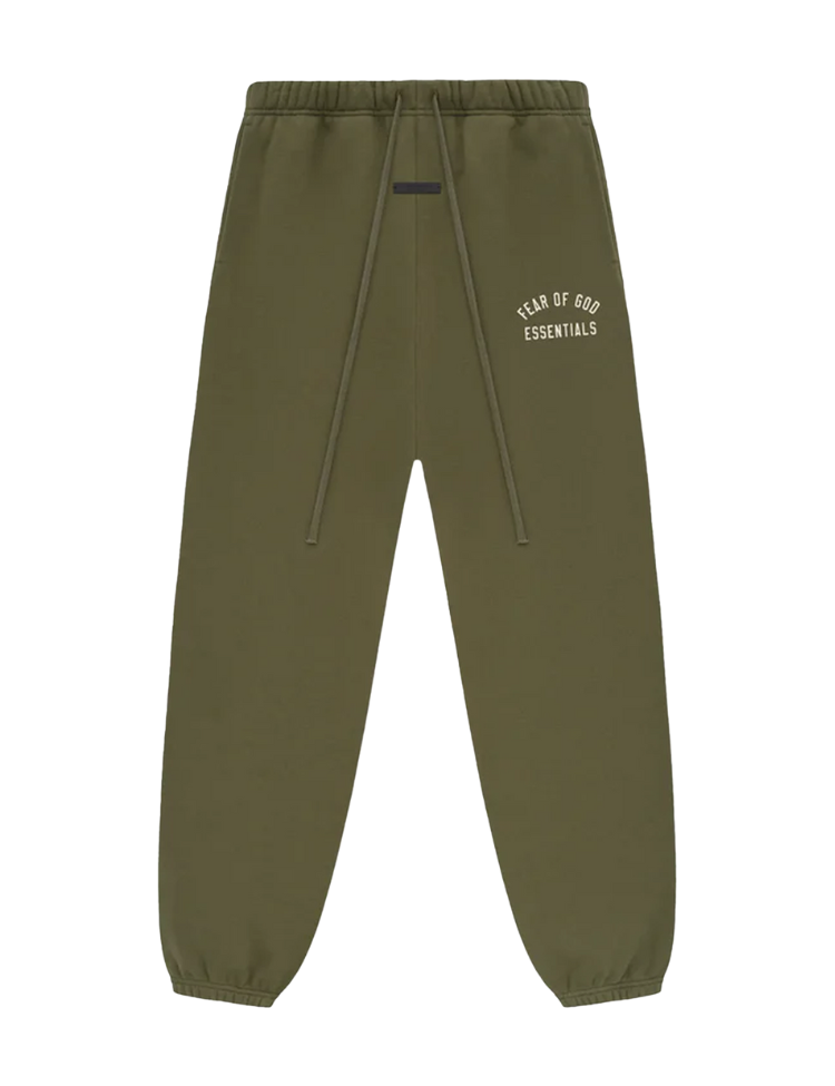 De Fear of God Essentials Sweatpants – Military is een premium joggingbroek uitgevoerd in een stoere, militairgroene tint. De sweatpants heeft een relaxed fit met een elastische tailleband en extra lange trekkoorden voor de herkenbare Essentials-look. Op het bovenbeen staat het “FEAR OF GOD ESSENTIALS” logo subtiel afgebeeld in contrasterend wit. De broek is gemaakt van een zachte, hoogwaardige sweatstof en heeft elastische boorden bij de enkels voor een comfortabele en moderne pasvorm. Perfect voor streetwear, casual outfits en dagelijks comfort.