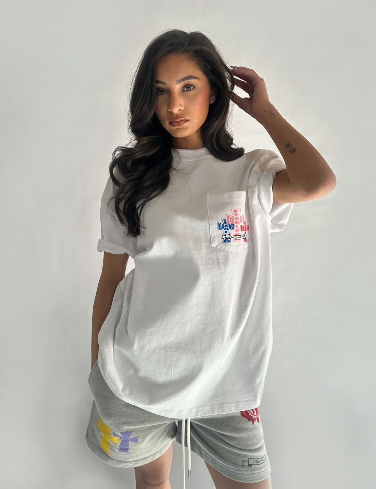 Het Fearless Blood Women Cross T-shirt is gemaakt van 100% katoen in een zware 250 GSM jersey, wat zorgt voor ultiem comfort en duurzaamheid. Het unisex model heeft een garment wash voor een ontspannen en casual uitstraling. De opvallende kruis-artworks geven het T-shirt een gedurfde edge, terwijl het borstzakje subtiele details toevoegt. Dit T-shirt is de perfecte balans tussen stijl en functionaliteit, ontworpen voor degenen die zich met vertrouwen bewegen. Verkrijgbaar in meerdere kleuren en makkelijk te combineren met elke outfit – dit T-shirt spreekt voor zichzelf.