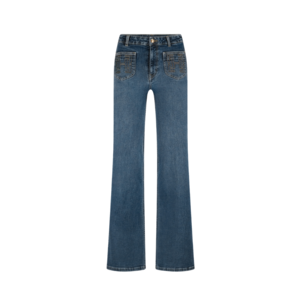 Wat deze jeans echt bijzonder maakt, zijn de opvallende steekzakken met ton-sur-ton borduursel op de voorzijde, die zorgen voor een unieke, retro-geïnspireerde twist. Combineer deze eyecatcher met een cropped blouse voor een vrouwelijke look of met een relaxed T-shirt en sneakers voor een effortless vibe. Van city strolls tot avondjes uit: met deze jeans zit je altijd goed.