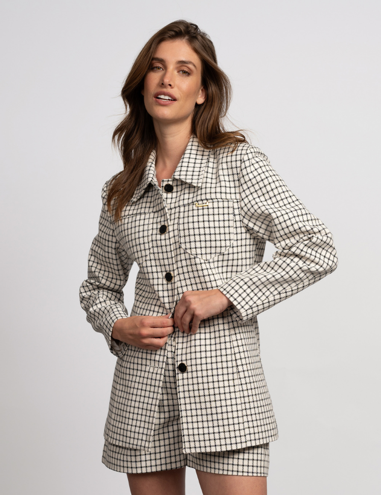 De Isabel Jacket van Fifth House is een moderne interpretatie van het klassieke ruitjasje. De recht gesneden pasvorm, goudkleurige details en zwarte knopen zorgen voor een stijlvolle en frisse uitstraling. De wolblend maakt het jasje comfortabel en ideaal voor het tussenseizoen.