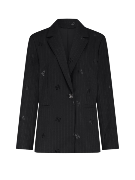 De blazer is uitgevoerd in een normaal vallende pasvorm en voorzien van verfijnde pinstripe-strepen met subtiele logodetails die de set een exclusieve uitstraling geven. De reverskraag, knoopsluiting en cleane afwerking maken dit item tot een veelzijdige essential voor elke gelegenheid.