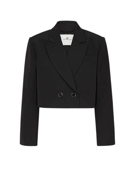 Deze zwarte pantalon van Fifth House heeft een wijde, rechte pijp die vanaf de heupen soepel doorloopt. De broek zit hoog in de taille met een aansluitende pasvorm rond het middel. Langs de zijnaden lopen decoratieve studs die een subtiel accent toevoegen. De tailleband sluit met een enkele knoop en heeft een gladde afwerking. Het soepele materiaal valt mooi recht naar beneden voor een gestroomlijnde look.