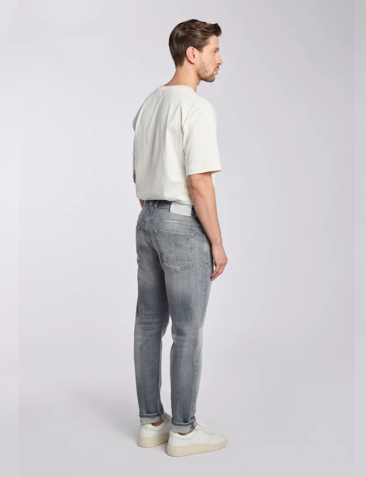 De GoldGarn U2 Tapered Fit - Light Grey is een moderne jeans met een verfijnde tapered pasvorm die naar de enkel toe smaller wordt. Deze lichtgrijze denim combineert een tijdloze uitstraling met een eigentijdse wassing voor een frisse, veelzijdige look. Gemaakt van een comfortabele stretchkwaliteit met 98% katoen en 2% elastaan, waardoor de broek soepel meebeweegt zonder vorm te verliezen.