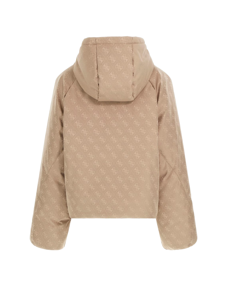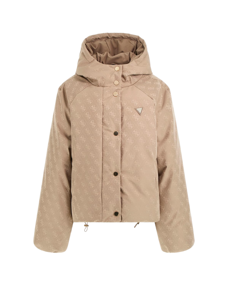 Guess 4G Boxy Puffer Jacket - 4G Jacquard Taupe