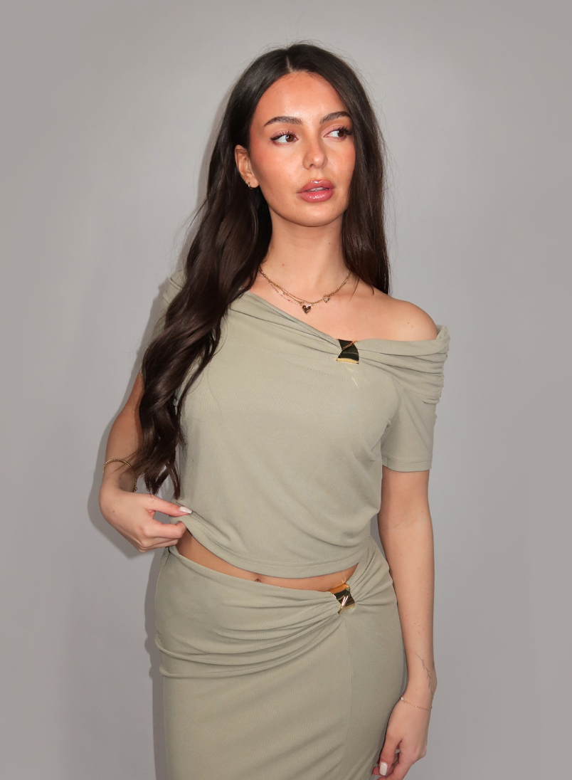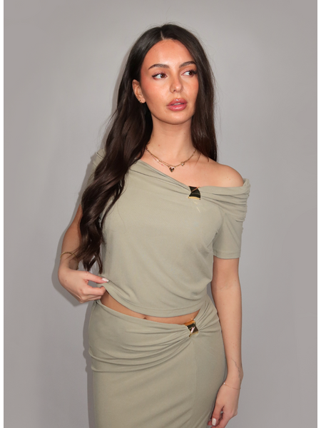 Guess Brigitte Off Shoulder Top - Sage Leaf