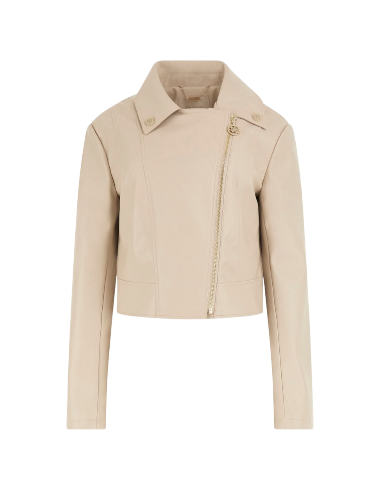 Guess Clemence Pu Leather Jacket - Pearl Oyster Multi