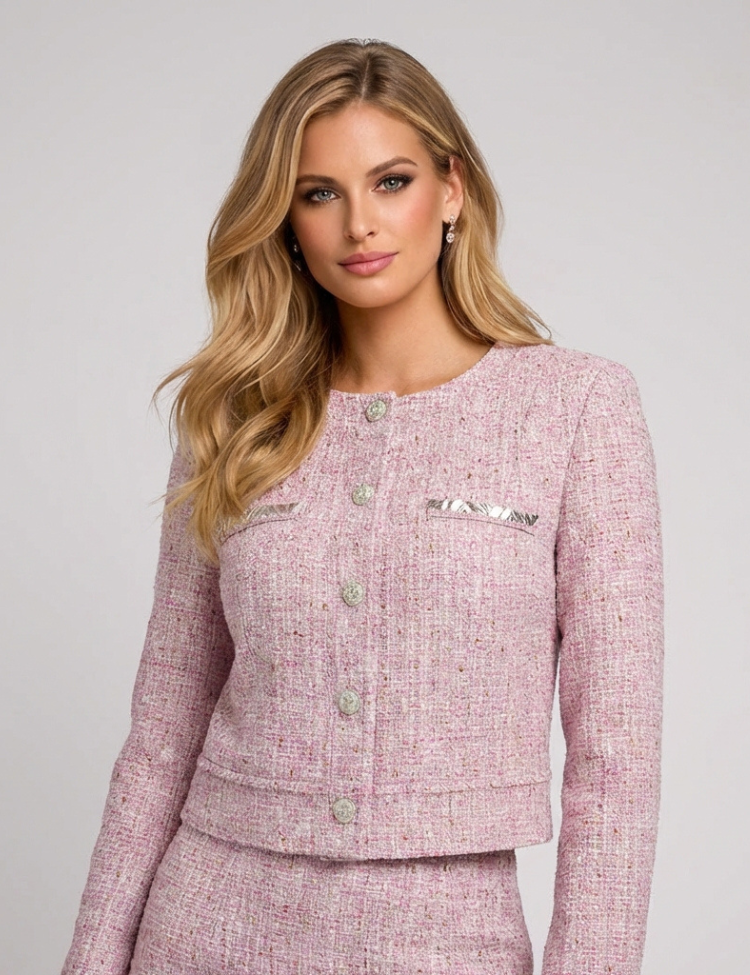 Guess Clotilde Tweed Jacket - Delicate Pink