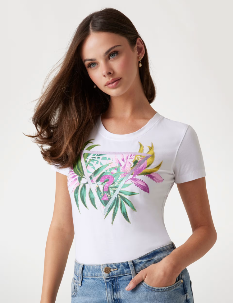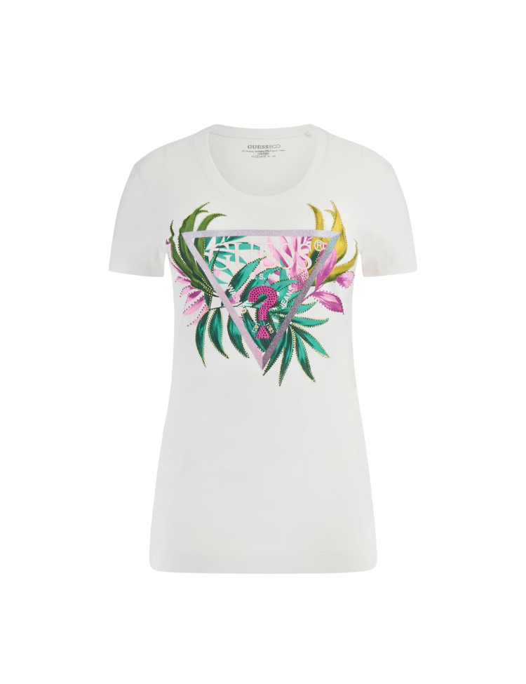 Guess CN SS Leaf Triangle T-Shirt - Pure White