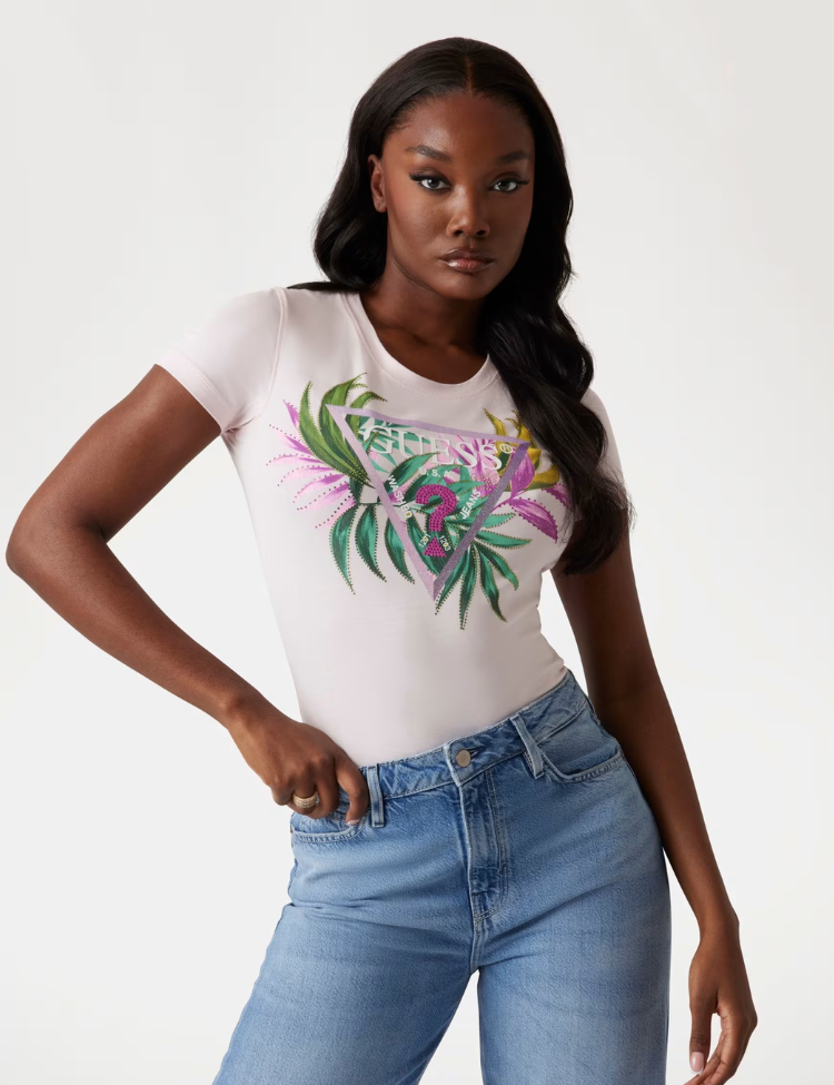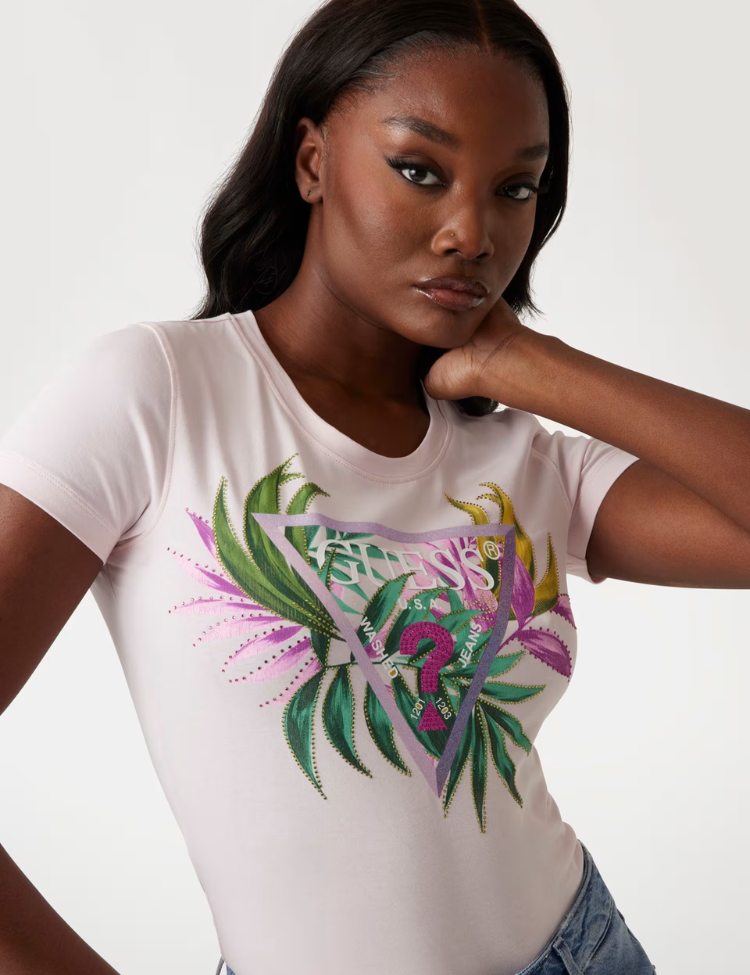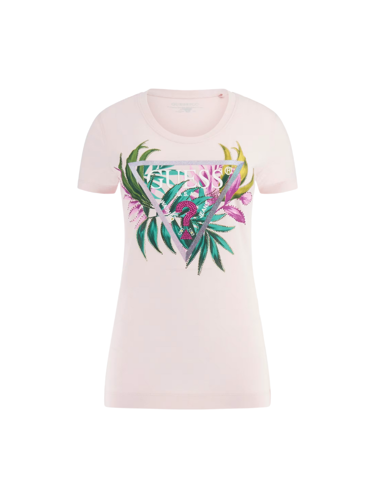 Guess CN SS Leaf Triangle T-Shirt - Low Key Pink