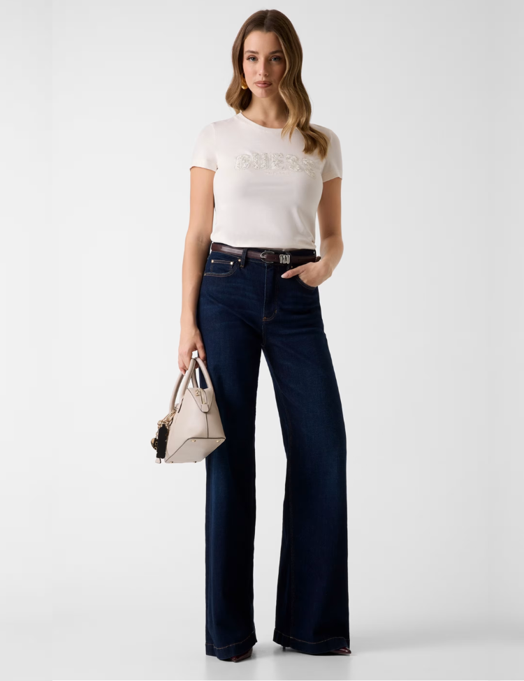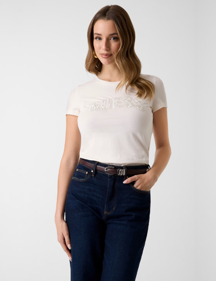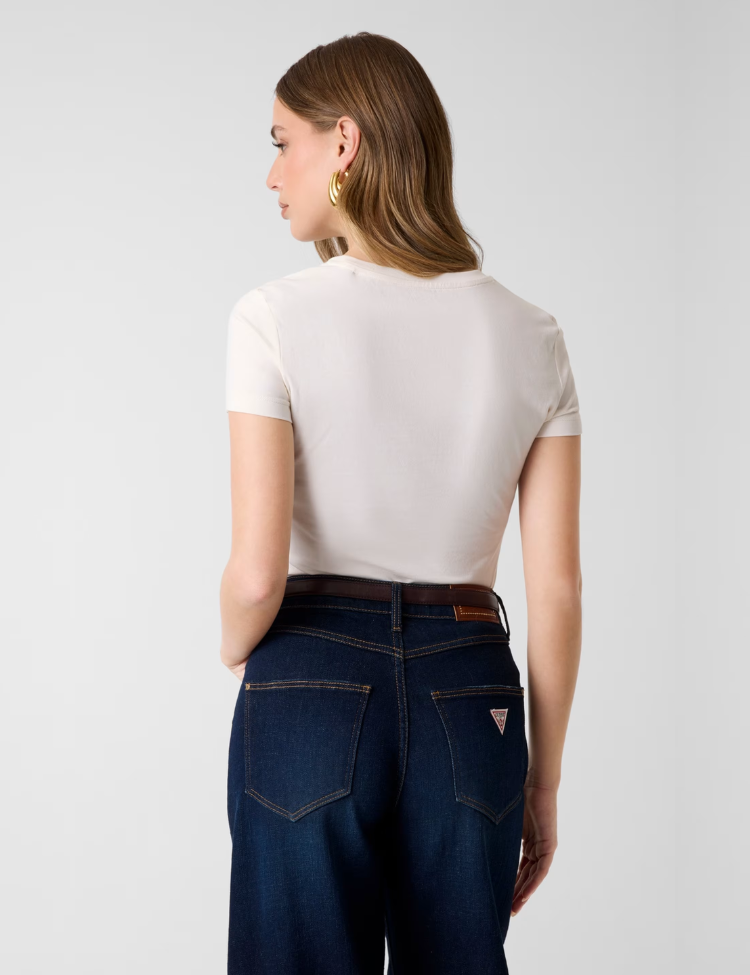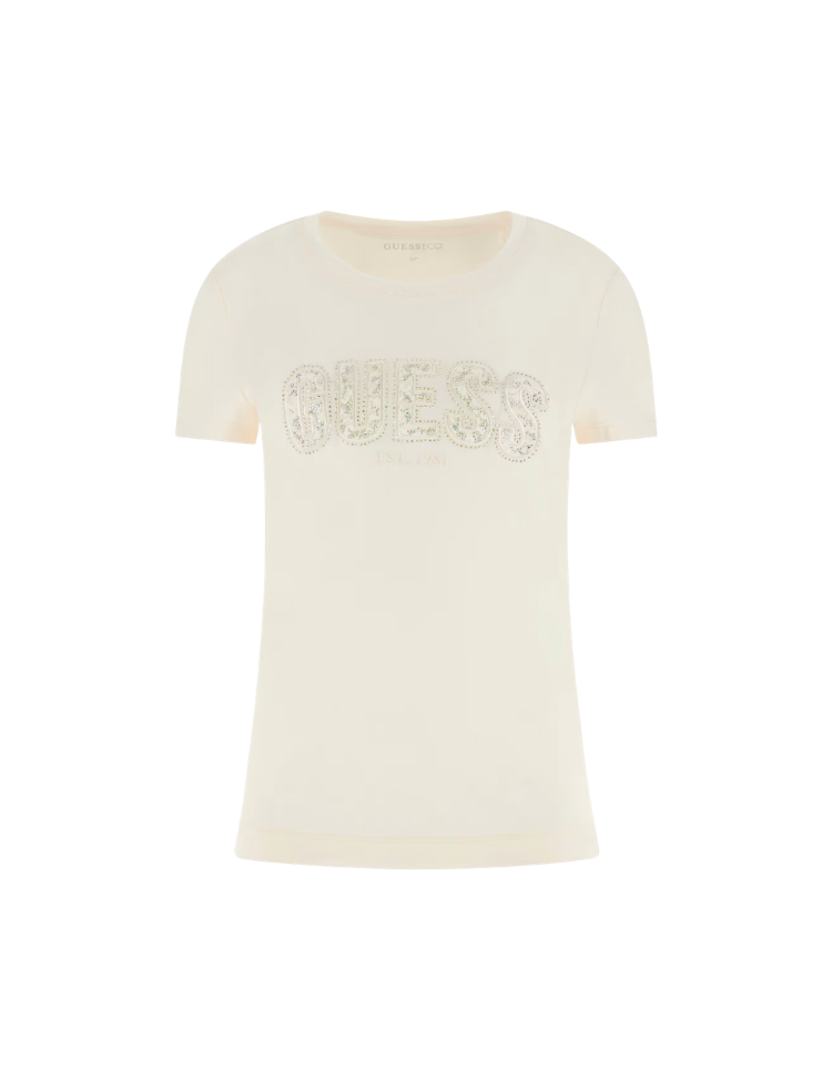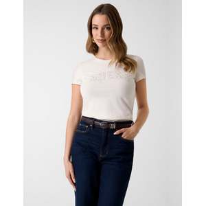 Guess CN SS Logo Lace Tee - Cream White