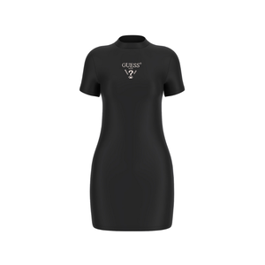 De Guess Colette Jersey Dress is een aansluitende jurk met korte mouwen, uitgevoerd in een comfortabele stretchjersey. Het model heeft een ronde halslijn en een geborduurd GUESS-logo met het iconische vraagteken op de borst in contrasterende kleur. De gestroomlijnde pasvorm en zachte stof zorgen voor een flatterende en moderne uitstraling. Ideaal voor een casual look met een sportieve touch.