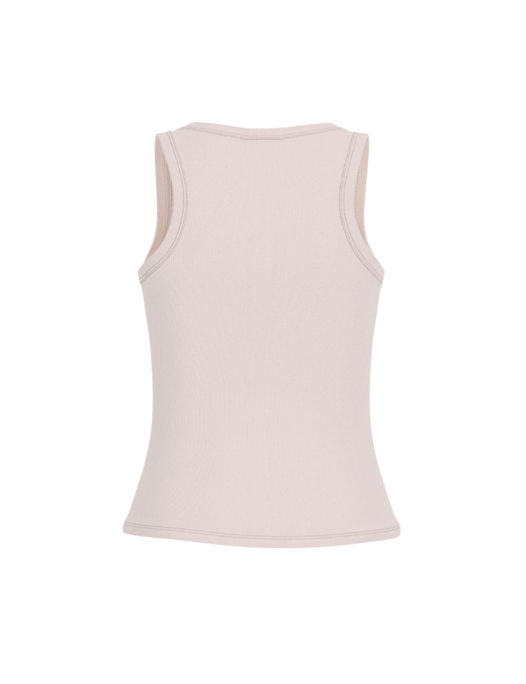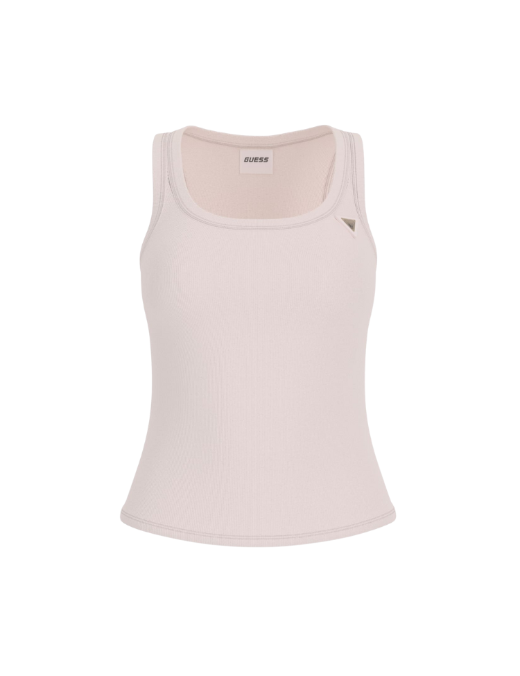 De Guess Colette Rib Tank Top heeft heeft een ronde hals en het bekende driehoeklogo op de voorkant. Verkrijgbaar in meerdere kleuren.