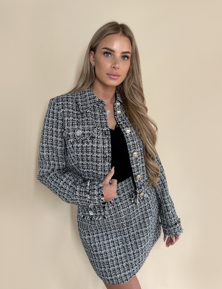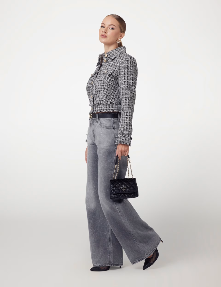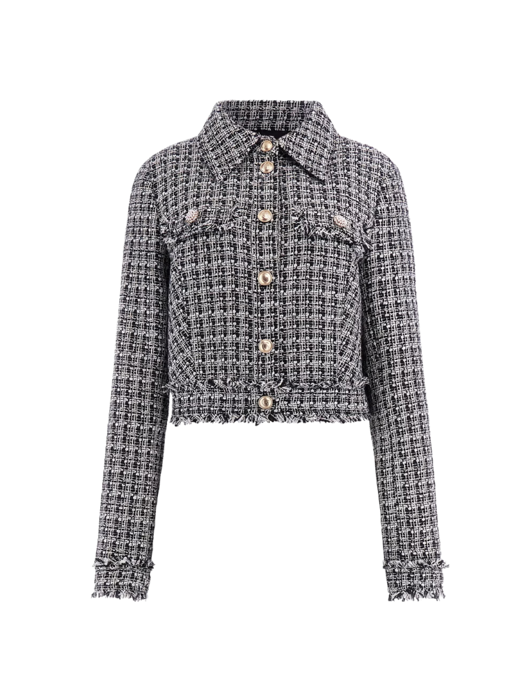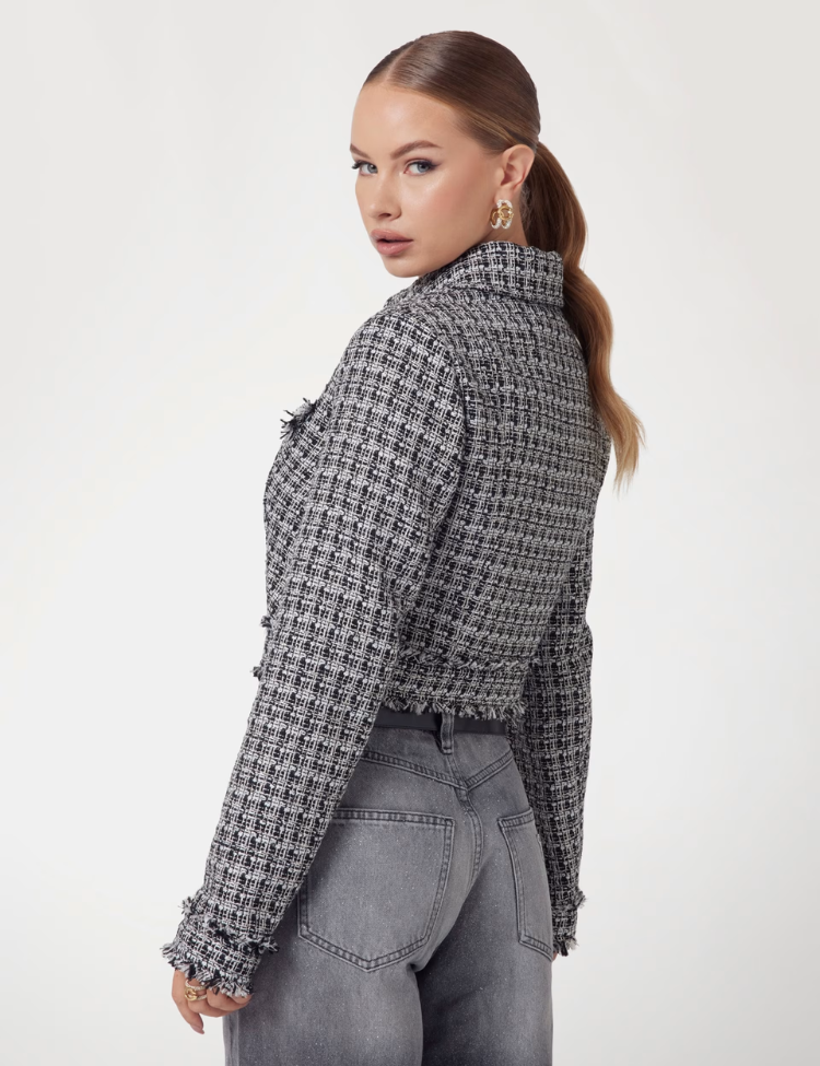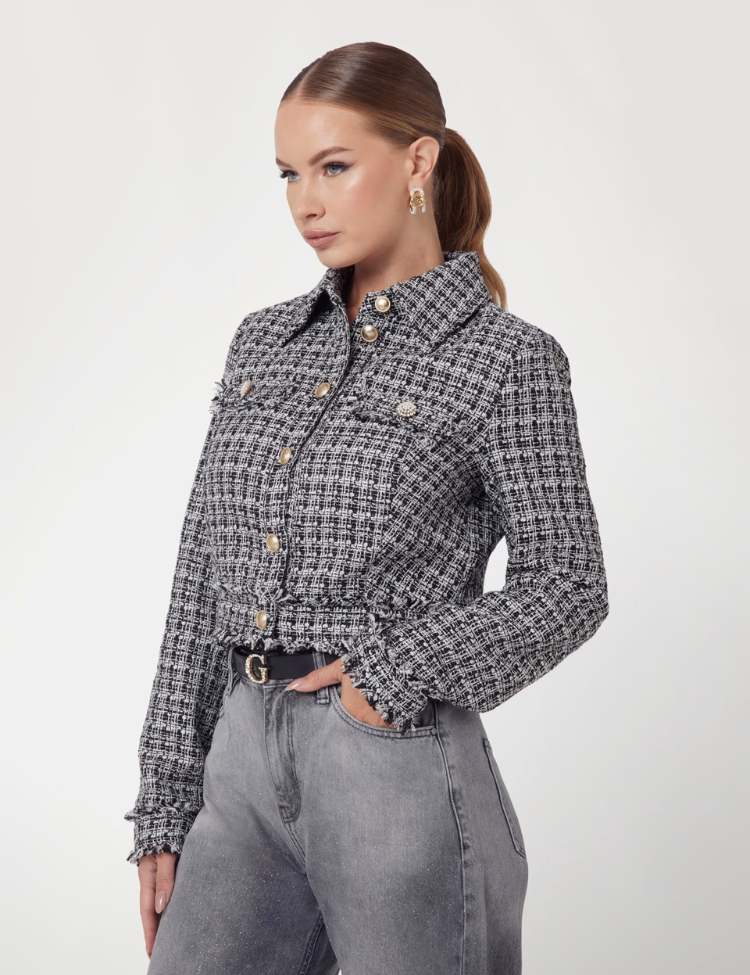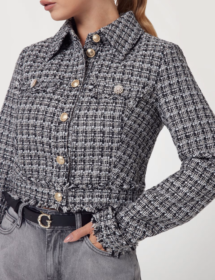 Guess Daphnee Cropped Jacket - Black/White Tweed