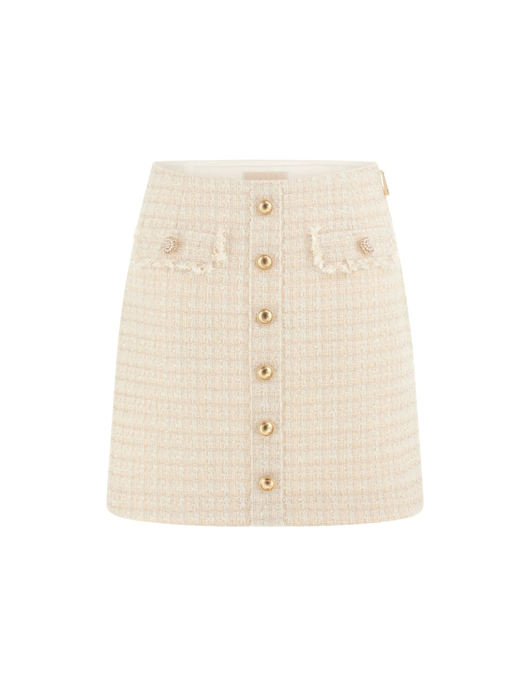 Guess Daphnee Mini Flap Skirt - Cream Tweed Combo