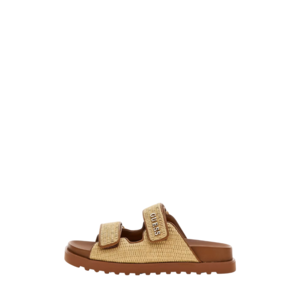 De Guess Fandalize Sandals zijn de ideale keuze voor een zomerse look met een vleugje luxe. Gemaakt van raffia, bieden deze sandaaltjes een lichte, natuurlijke uitstraling die perfect past bij warme dagen. De ronde punt geeft de sandaal een elegante en tijdloze vorm. Met een randhoogte van 1,7 cm bieden ze net genoeg hoogte voor comfort, zonder in te boeten op draagbaarheid. De sluiting met het dubbel bandje aan de voorkant zorgt voor een veilige en verstelbare pasvorm, terwijl het ontwerp je voeten subtiel accentueert. Deze sandaal is perfect voor zowel casual als meer geklede zomerse outfits.
