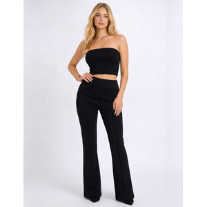 Deze flared broek draag je mooi op pumps of laarzen, zodat de uitlopende pijp goed tot zijn recht komt. Combineer de broek met een strakke top of getailleerde blouse voor een gebalanceerd silhouet. Een blazer erover maakt de look compleet.