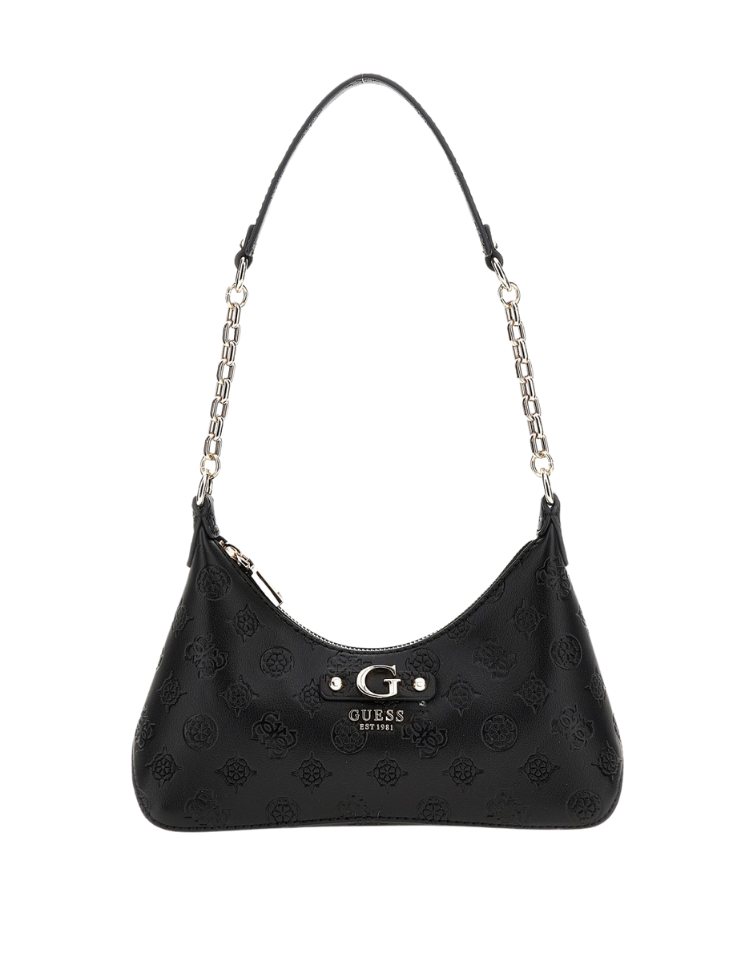 De verstevigde randen, beschermende voeten en het subtiele Guess-logo geven de tas een verfijnde uitstraling. De comfortabele schouderriem zorgt ervoor dat je de tas gemakkelijk kunt dragen. Een veelzijdig accessoire voor de moderne vrouw!